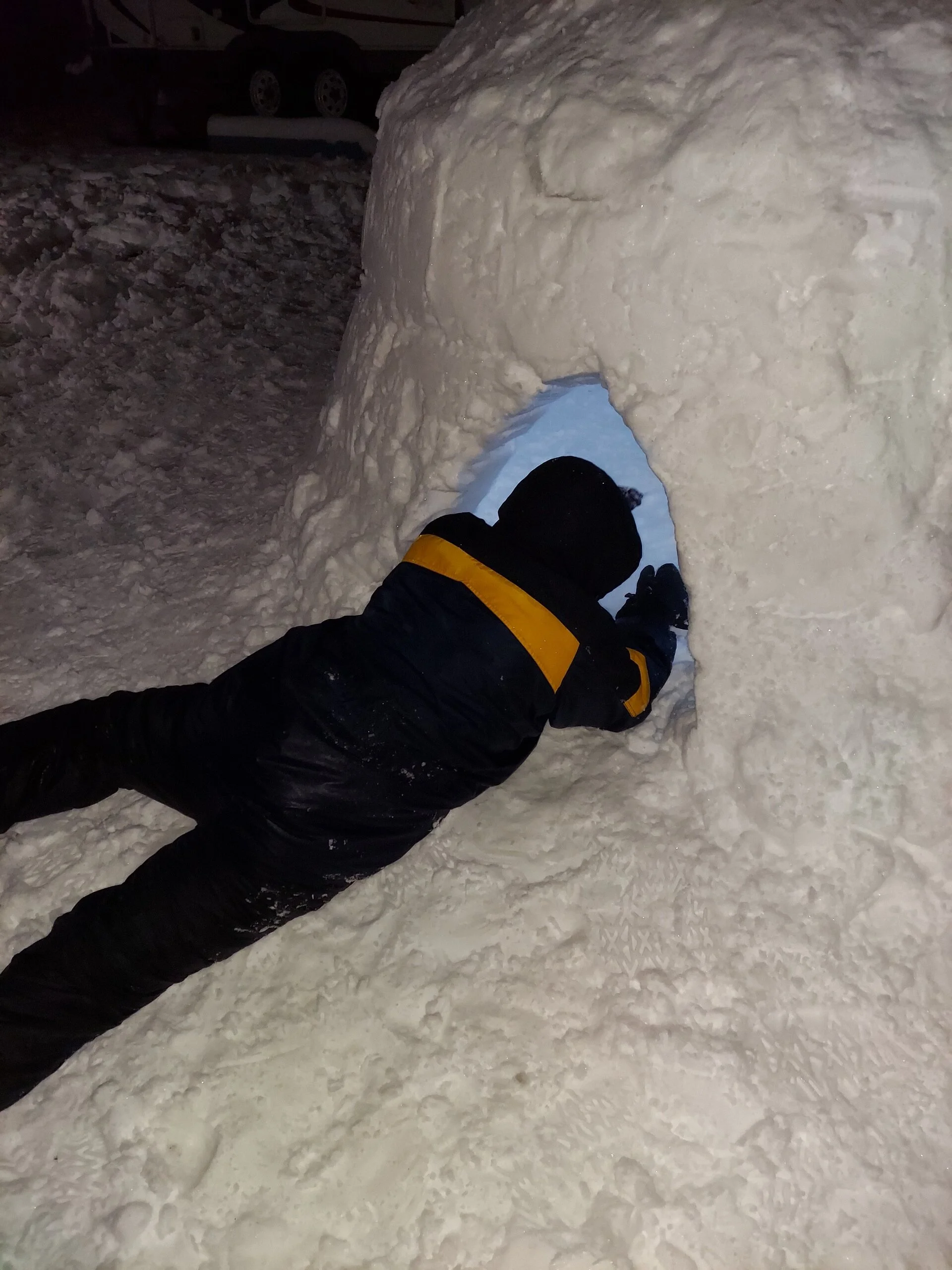 Thanks to Theo and Jeanine, the 7' - 7' Igloo is competed! Temperatures of 1 degree Fahrenheit with a Real Feel of -10 F expected tonight (1-29-2022).
